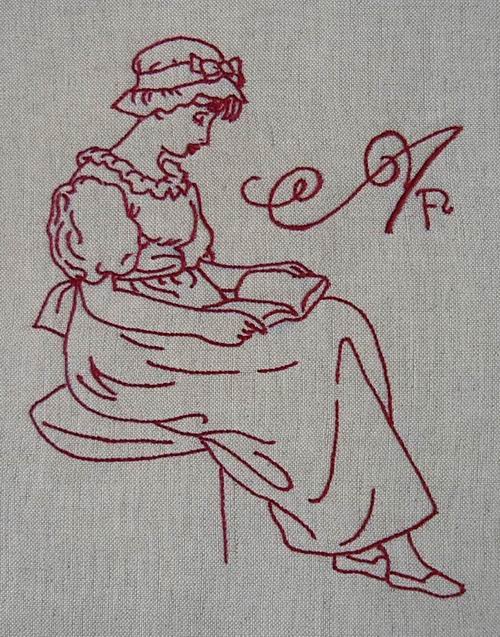 Così nasce il mio primo redwork, che però non ha certo la pretesa di emozionare… Spero soltanto che il risultato sia piacevole, e se così è il merito va soprattutto all’abile disegnatore che ha offerto il disegno della lettrice (NeedleCrafter). Altre risorse interessanti sono reperibili sul gruppo redwork di Flickr e sul sewterific.