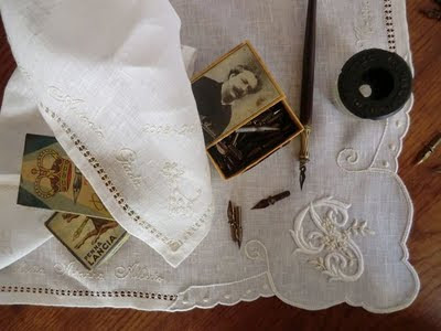 Abbiamo pensato a un fazzoletto per celebrare la commozione legata al commiato, dopo tre splendidi anni di scuola materna, e in un angolo con smerlo ho ricamato l’iniziale del nome (tratta dal libro delle lettere della Babbi-Cappelletti), con filati bianco ed ecrù.