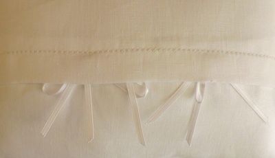 Visto che può interessare, posto anche il retro del cuscino, aperto con sormonto e chiusura data dai fiocchi.