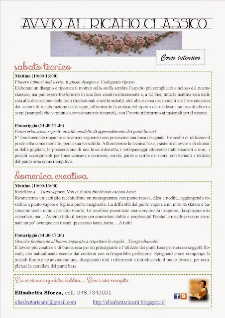E mentre metto a punto le ultime immagini della presentazione, stampo e suddivido i fogli della dispensa e rielaboro i ricami da proporre, giunge inaspettata una seconda data.