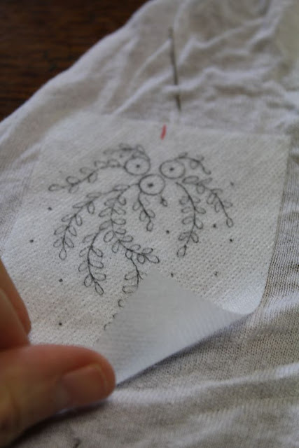 Dunque mi sono decisa a testare il foglio bianco, ricamando il gruppo glicine su un coprispalle bianco in fine maglina.