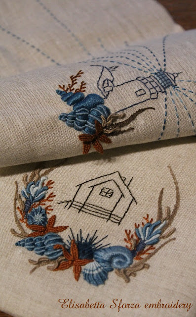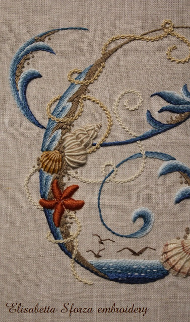 Io rimango sempre a bocca aperta quando ammiro i tuoi ricami, ma con questo ti sei proprio superata; le conchiglie sembrano vere tanto sono perfette, le stelle marine, i coralli…tutto sembra prendere vita