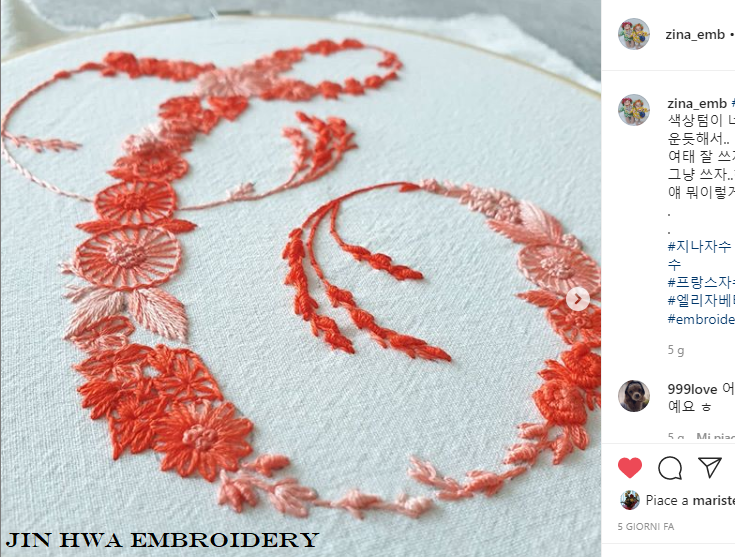 Con grande entusiasmo, girovagando tra le bacheche e gli hashtag di Instagram, ho scoperto @zina_emb e i suoi bellissimi lavori.
