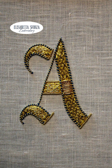 Il primo ho passato in rassegna tutti i miei bei alfabeti antichi, incapace di capire da quale partire e sul come abbinare i materiali: la testa prendeva gli alfabeti più attraenti e li ricamava in mille modi, oro escluso. Tant’è vero che nella settimana successiva ne avevo usato uno per il punto pieno, a cui a breve dedicherò un post.