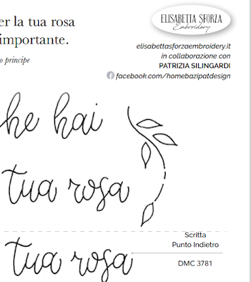 Ho chiesta alla mia mitica Laura Arnaldi di compilarmi un pdf snello snello, che potete scaricare sul mio sito a questo link (www.elisabettasforzaembroidery.it). Per scaricarlo, basta scorrere la home page giù giù giù oltre la galleria e cliccare sull’apposito pulsante dopo la citazione di Antoine De Saint-Exupéry.